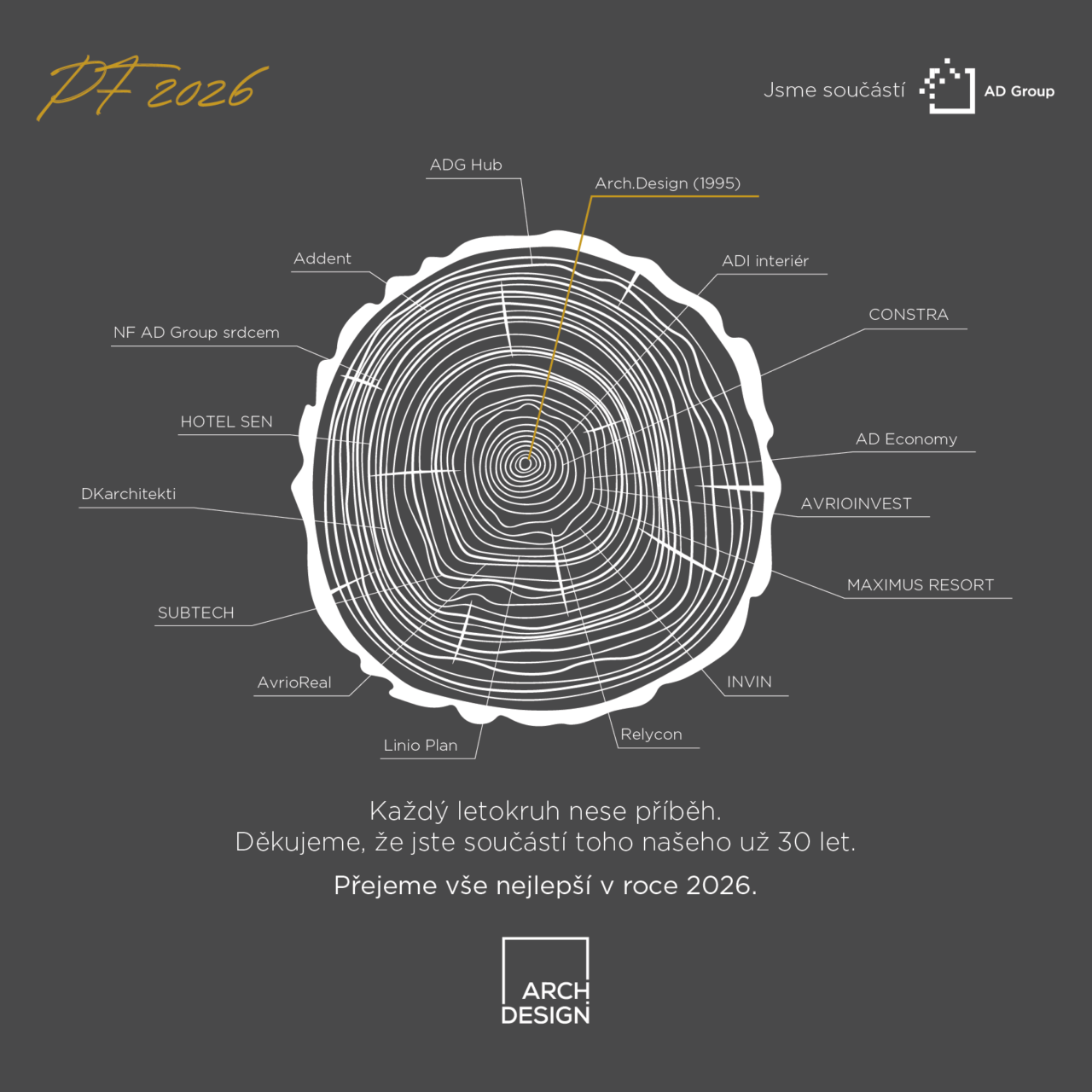 PF 202629/12/2025 Každý letokruh nese příběh.Děkujeme, že jste součástí toho našeho už 30 let.Přejeme vše nejlepší v roce 2026.https://www.archdesign.cz/wp-content/uploads/pf-adg.mp4