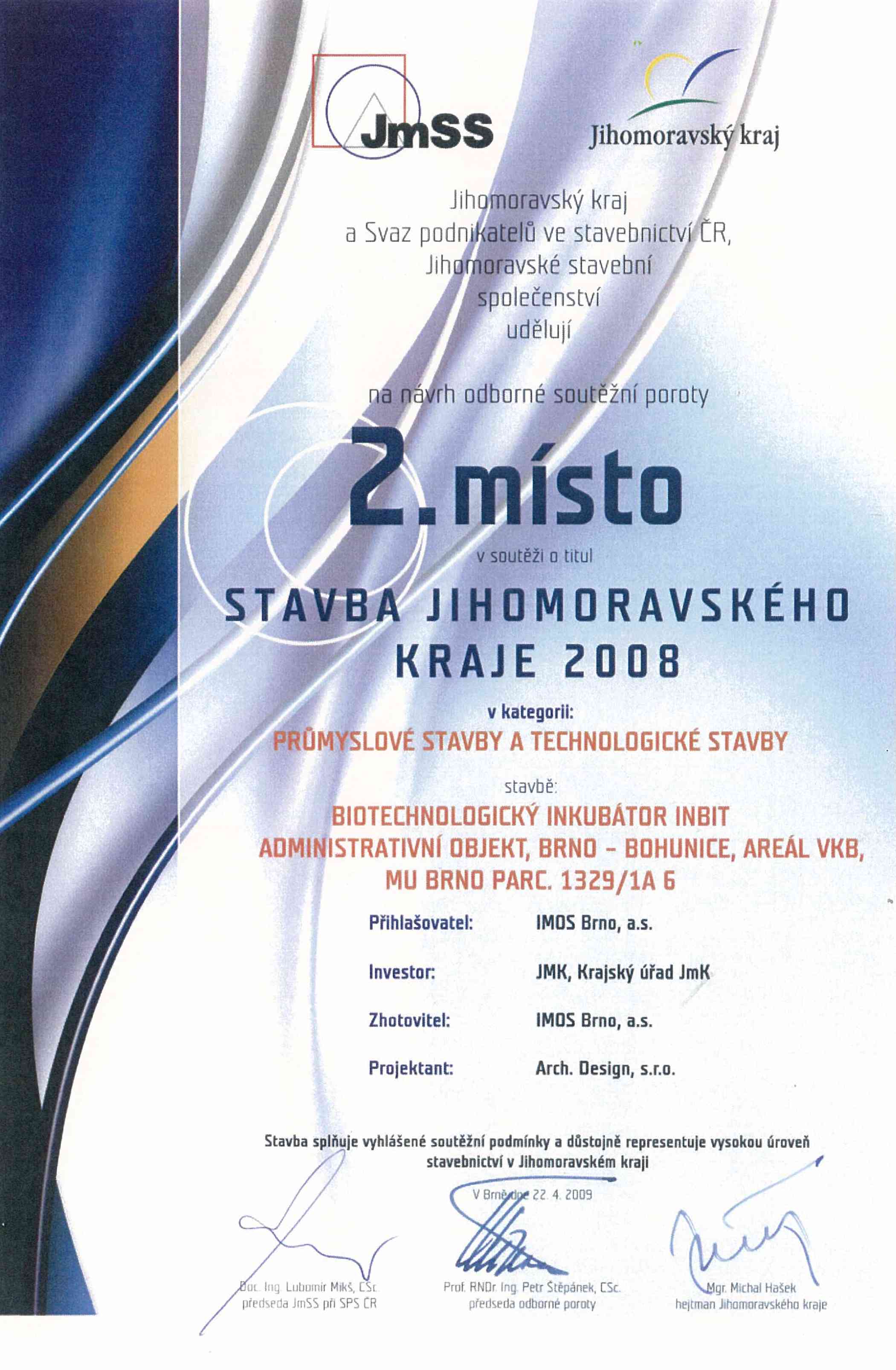 2nd place | Building of South Moravia Region 2008 | Category: Industrial and Technological Building