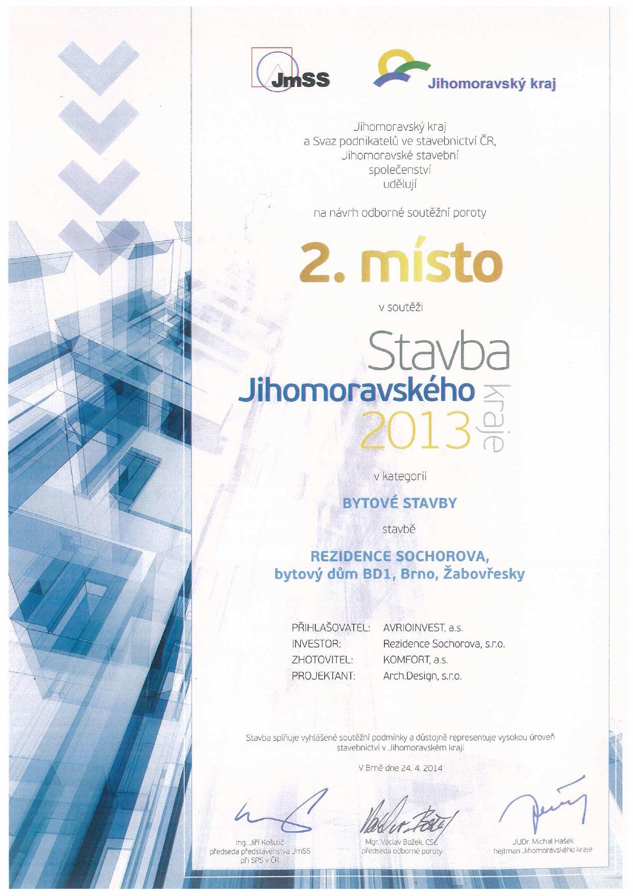 [post_content] => 1. místo | Stavba Jihomoravského kraje 2015 | Kategorie: Stavby občanské vybavenosti Bytovým dům (BD1) 2. místo | Stavba Jihomoravského kraje 2015 | Kategorie: Bytové stavby